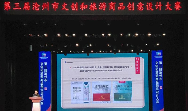 本次大賽是由滄州市文化廣電和旅游局、滄州市工業(yè)和信息化局聯(lián)合舉辦。在歷時6個月的比賽中,“滄鹽”牌海鹽熱敷包(宮廷款)最終脫穎而出,代表渤海新區(qū)進入決賽,并經(jīng)過決賽路演、專家評審榮獲銀獎。此獎項也是渤海新區(qū)參賽商品中的最高獎項。