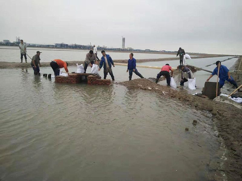8月10日晚至11日,暴雨持續(xù),雨勢迅猛,再次降水超過100毫米,此時降雨量已經(jīng)遠遠超出了灘田抗雨能力的極限。整個暴雨過程中,長蘆鹽業(yè)公司從班子到每一名職工都堅守崗位。公司經(jīng)理宋建林自9日開始在崗,整整50多個小時顧不得休息,緊密關注降雨動態(tài),全面進行指揮調度,數(shù)次到搶險現(xiàn)場,查看災情,指揮搶險。8月10日深夜12時,制鹵一工區(qū)揚水站機房進水,宋建林馬上趕往現(xiàn)場,協(xié)調挖掘機、組織十幾名搶險突擊隊員救災,與大潮爭時間、作斗爭,經(jīng)過兩個多小時填堵,汛情消除,保住了設備設施;11日晚11時,馮家堡北站泵站周邊潮水水位超過泵口一米,幾十名防汛突擊隊員奮力長埝擋水。由于潮位太高,隨時都有發(fā)生決堤和人身安全受到傷害的危險,宋建林觀察水勢后果斷命令斷電、人員緊急撤離。12日凌晨1時30分,制鹽三工區(qū)20隊汛情緊急,汛情地段挖掘機難以進入,公司班子當即帶領機關全體人員、服務工區(qū)防汛突擊隊成員迅速趕往現(xiàn)場搶險,在黑夜的狂風暴雨中跳進水中挖泥裝袋,長高加固護灘埝,經(jīng)過3個多小時的搶修加固,堵住了決口,消除了險情。汛情最嚴峻的危機階段,各工區(qū)全體黨員干部跳進洪水和泥濘中,包點包片各負其責,進入了搶險陣地。