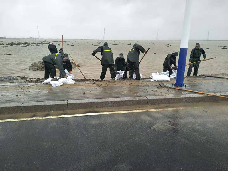 幾個晝夜中,公司領導班子不間斷巡查汛情危險地段和各個排淡下口,查看和掌握水位及流量情況,漲潮時及時安排排淡閘關閉,退潮時及時提開閘門,確保了潮水不倒灌,淡水及時排出,并和各相鄰單位溝通協(xié)調,開辟新的排淡路線,盡快消除汛情、險情。8月9日晚到13日,整個長蘆鹽業(yè)公司生產(chǎn)區(qū)汛情不斷,防汛突擊隊和制鹽一線全體職工晝夜巡邏,及時搶險。據(jù)統(tǒng)計,本次搶險救災共用編織袋21000余條,鐵絲500余公斤,葦席900余領,木樁2000余根,動用挖掘機14臺、鏟車7臺,機械搶險95小時,投入搶險人員2700人次,竭盡全力消除淡水壓灘的險情。重大災情面前,長蘆鹽業(yè)公司顧全大局,為保障渤海新區(qū)港城區(qū)雨水及時外排,制鹵二工區(qū)階段性封閉了淡水排放口,又及時在一揚揚水站為新區(qū)排水提供供電,并且主動降低滄海公園水位,保證港城排水設備正產(chǎn)運轉、免遭高水位損壞,為港城居民正常生產(chǎn)生活貢獻力量,體現(xiàn)了高度的責任感和愛崗奉獻的滄鹽精神。在歷史罕見的超強臺風、特大暴雨面前,長蘆鹽業(yè)公司全體干部職工無畏無懼,搏風擊雨,沒發(fā)生任何外圍淡水壓灘現(xiàn)象,竭盡全力減少鹽斤、塑苫、企業(yè)財產(chǎn)損失。