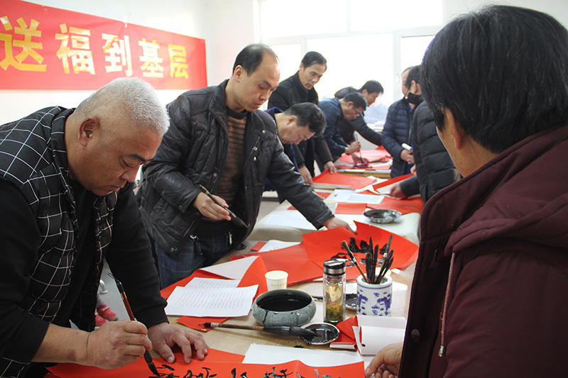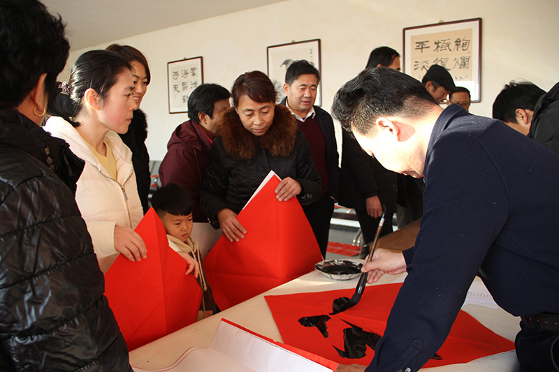 集團(tuán)公司黨委委員、紀(jì)委書記狄彬親自帶領(lǐng)集團(tuán)公司書法志愿者,分別在青鋒農(nóng)場和原二分場大院,進(jìn)行了現(xiàn)場書寫,受到青鋒群眾及公司職工的歡迎。一幅幅喜慶的春聯(lián),一張張熱情的笑臉,伴隨著愉快的笑聲,活動現(xiàn)場充滿歡樂祥和的氣氛。
