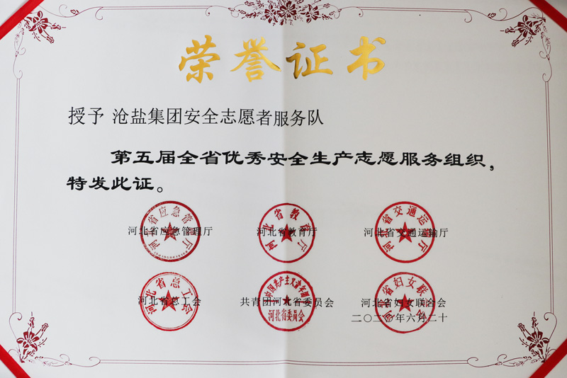 近日,集團(tuán)公司榮獲2019年度省“優(yōu)秀安全生產(chǎn)志愿服務(wù)組織”和滄州市“安全生產(chǎn)先進(jìn)單位”榮譽(yù)稱號(hào),這是公司連續(xù)第三年獲得這兩項(xiàng)榮譽(yù)。