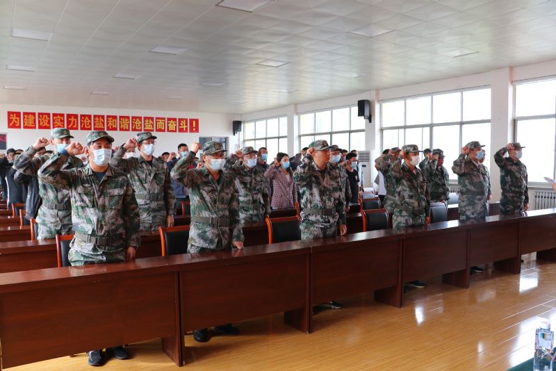大會在雄壯的《中國人民解放軍軍歌》中拉開序幕,曹建功宣讀了民兵干部任命。張富棚對參加點驗的民兵進行了身份核查,所有參加點驗活動的民兵舉手宣誓,展示了滄鹽集團民兵隊伍良好的精神面貌。新入隊民兵代表進行了表態(tài)發(fā)言。