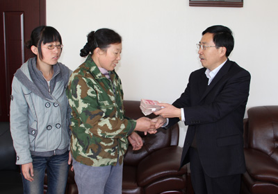 10月25日,當董事長程同海將寄托著1640多名干部職工哀思和祝福的捐款交到王翠榮手中時,王翠榮感動得熱淚盈眶,連聲說:謝謝,謝謝大家的關(guān)心。