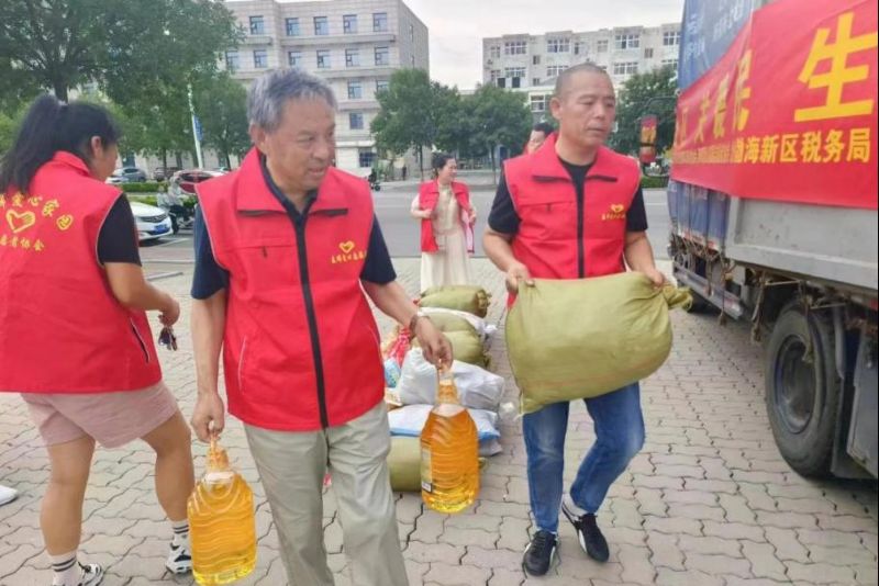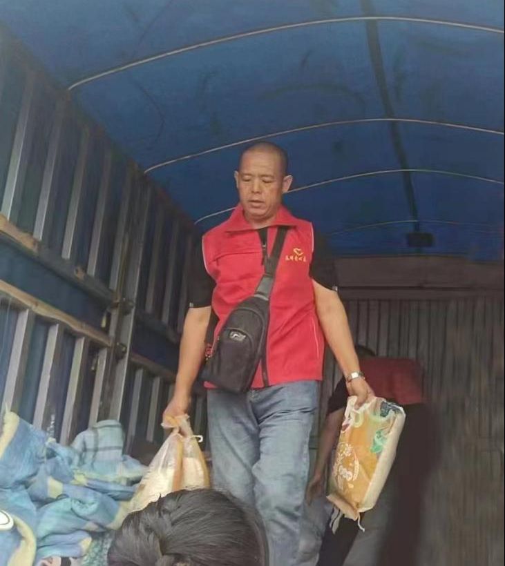 7月29日早晨5時,張元彬攜妻兒與所屬的渤海新區(qū)黃驊市港城區(qū)春暉志愿者團(tuán)隊聯(lián)合渤海新區(qū)黃驊市紅色朝陽志愿者團(tuán)隊,共計50余人驅(qū)車四百多公里前往保定淶源愛心互助家園,為當(dāng)?shù)毓鹿牙先思皟和腿チ艘路、被子、鞋、米、油、書包、筆等生活、學(xué)習(xí)物資必需物品。這是張元彬全家第三次去淶源山區(qū)進(jìn)行志愿服務(wù)。