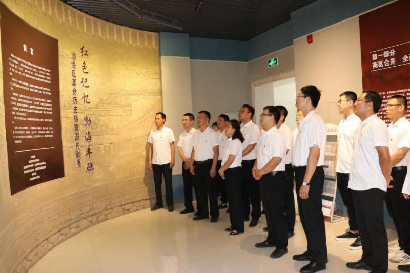 為深入貫徹黨的二十大精神,慶祝中國共產黨成立102周年,常態(tài)化長效化開展黨史學習教育,從6月下旬開始,黨委組織廣大黨員以總支、支部為單位在渤海新區(qū)黃驊市博物館參觀了“紅色記憶 渤海豐碑”渤海區(qū)革命歷史檔案圖片聯(lián)展。