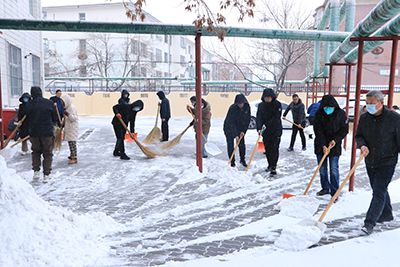 機關(guān)黨總支黨員領(lǐng)導(dǎo)干部率先垂范,黨員突擊隊成員、入黨積極分子沖鋒在前,全身心的投入到除雪工作中,經(jīng)過浴“雪”奮戰(zhàn),院內(nèi)外積雪得到了及時清理。