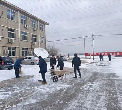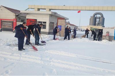 12月13日至15日的降雪天氣過程,場區(qū)降水量達(dá)到10.3毫米,各生產(chǎn)廠區(qū)積雪厚度超過10厘米,給職工出行和正常生產(chǎn)帶來較大影響。15日清晨,各單位積極行動,組織在崗黨員干部職工,全力清除積雪。