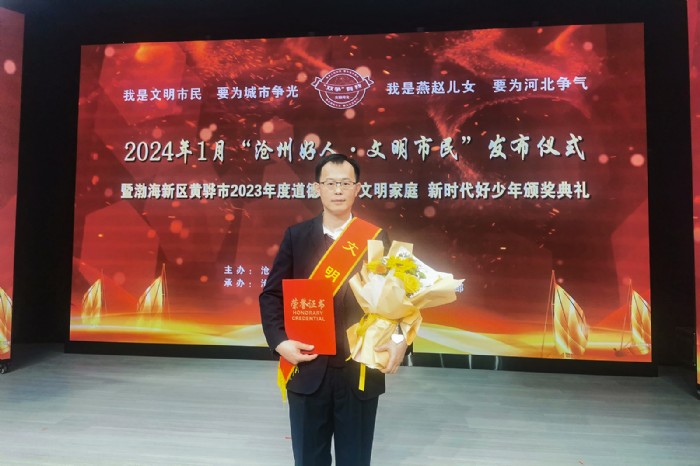 近日,渤海新區(qū)黃驊市2023年度道德模范、文明家庭評選結(jié)果揭曉,滄州鹽業(yè)集團有限公司職工林剛家庭榮獲“渤海新區(qū)黃驊市文明家庭”稱號,并于1月25日接受了表彰。