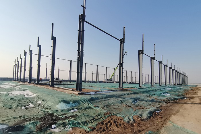 1月6日,滄鹽龍順木材加工基地項目鋼結(jié)構(gòu)標準化廠房正式進入安裝階段。