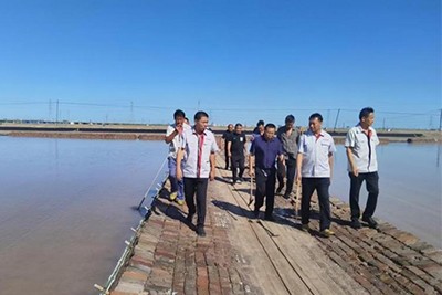 8月26日特大暴雨過后,長蘆公司在做好淡水出灘的同時及時回收塑膜,對結(jié)晶池進行逐灘逐池摸排,全體制鹵人員晝夜進行二次片淡保鹽并展開鹵水排隊。為檢驗生產(chǎn)措施成效,長蘆公司對25隊、26隊的災(zāi)后生產(chǎn)恢復(fù)、結(jié)晶管理和鹵水排步等各項工作進行了觀摩學(xué)習(xí)和經(jīng)驗交流。