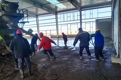 目前,混凝土澆筑地面施工正在如火如荼進(jìn)行,現(xiàn)已完成澆筑面積4300平方米。