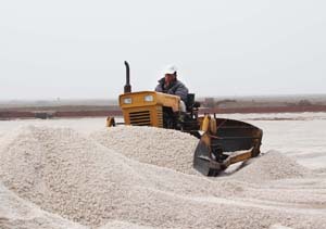 在原鹽生產(chǎn)中,“兩機(jī)兩塑、退池聯(lián)曬”工程的實(shí)施應(yīng)用發(fā)揮了突出的作用。節(jié)省勞動用工350人,年節(jié)省人工成本1500萬元,減輕了職工的勞動強(qiáng)度,提高了原鹽質(zhì)量,穩(wěn)定了原鹽產(chǎn)能。