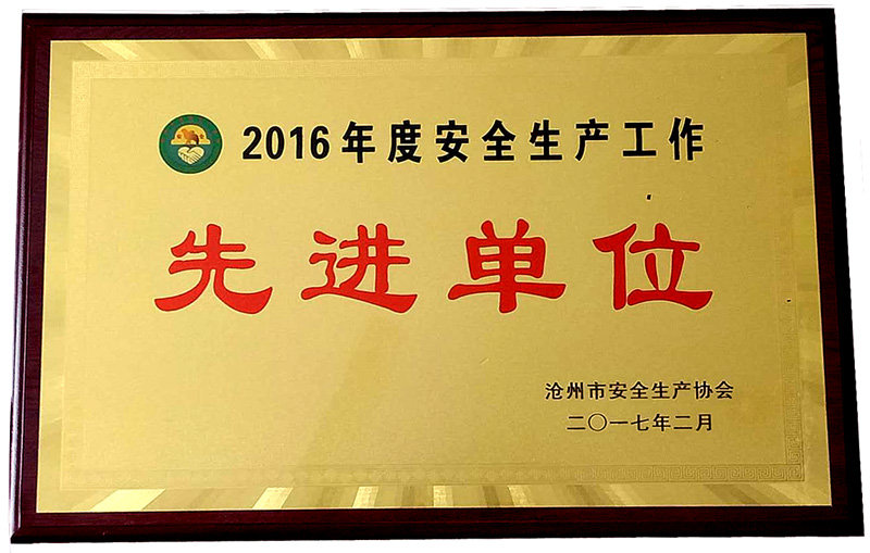 日前,公司被滄州市安全生產(chǎn)協(xié)會評為“2016年度安全生產(chǎn)工作先進單位”。