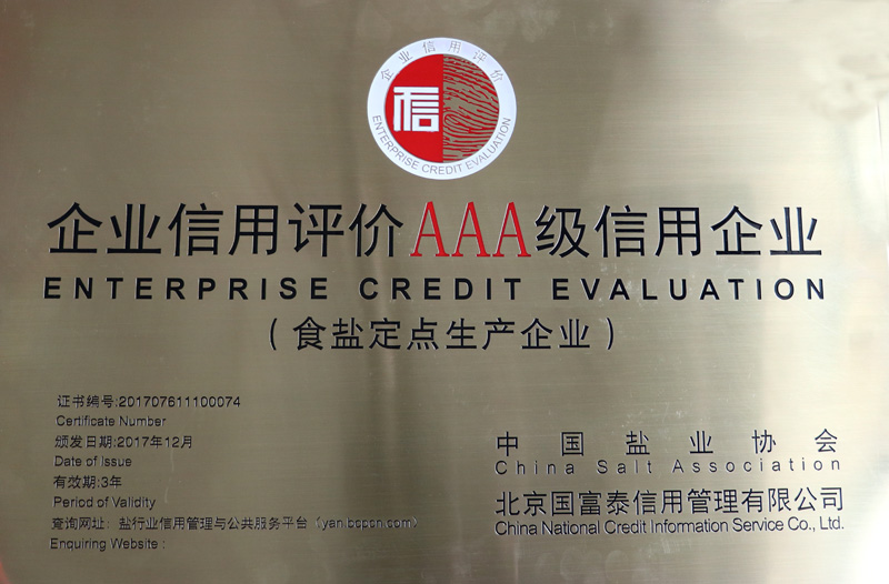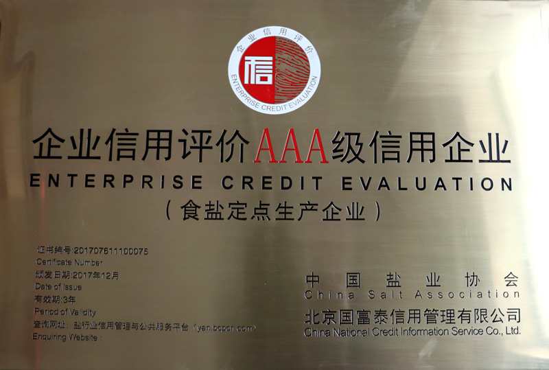 此次評(píng)定是經(jīng)第三方專業(yè)評(píng)價(jià)機(jī)構(gòu)嚴(yán)格評(píng)價(jià)和中國(guó)鹽業(yè)企業(yè)信用等級(jí)評(píng)價(jià)委員會(huì)審核,并通過向社會(huì)公示無異議,評(píng)定出56家AAA級(jí)食鹽定點(diǎn)生產(chǎn)企業(yè)。