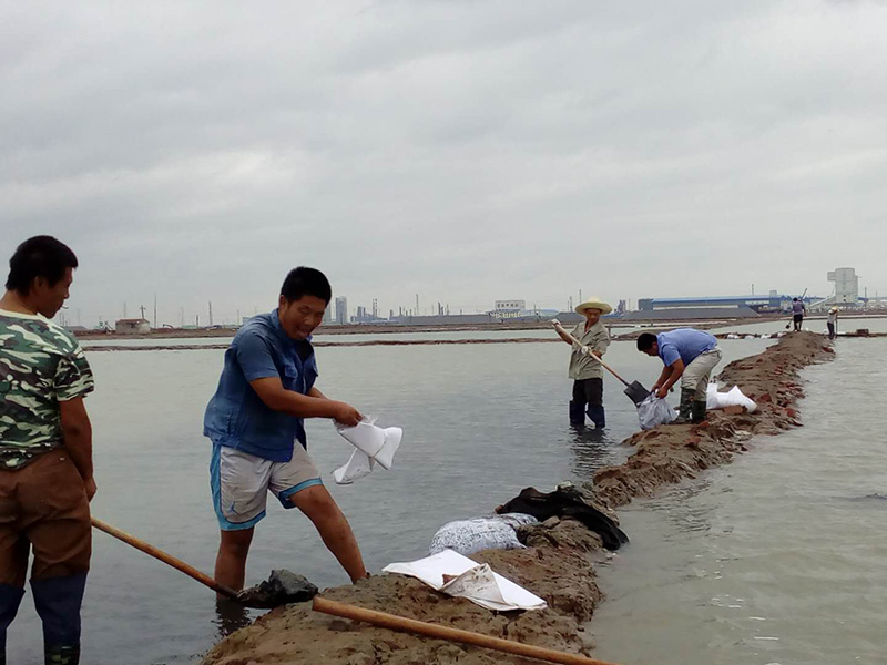 災(zāi)情發(fā)生后,公司立即啟動(dòng)防汛應(yīng)急預(yù)案,迅速組織干部職工開展生產(chǎn)自救,積極做好救災(zāi)抗災(zāi)工作,確保公司財(cái)產(chǎn)、人員安全。整個(gè)防汛抗災(zāi)過(guò)程中,一線干部職工發(fā)揚(yáng)“戰(zhàn)天斗地”的滄鹽精神,眾志成城、嚴(yán)防死守、抗災(zāi)搶險(xiǎn),采取外堵(堵住外圍水不進(jìn)場(chǎng)區(qū))、下疏(重新開通入海泄洪口3處)、內(nèi)保(保住駁鹽溝、導(dǎo)水路護(hù)灘埝不決口)的有效措施,先后排除各類險(xiǎn)情245處,最終奪取了抗災(zāi)保產(chǎn)的階段性勝利。