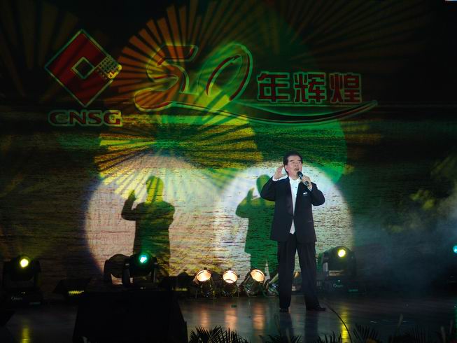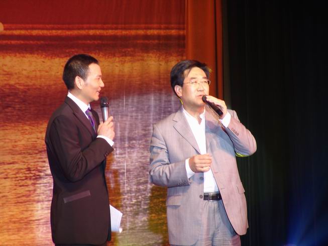 中鹽總公司副總經(jīng)理萬建軍(右)即興演唱